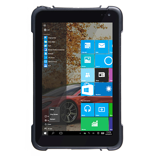 8英寸三防平板終端|Intel Atom? Intel Atom Z3735F處理器|支持Windows 10 |康寧大猩猩玻璃|內(nèi)存可選2G/3G/4G LPDDR3|存儲(chǔ)可選8G/16G/32G/64G/128G|攝像頭2.0MP+5.0MP/13.0MP|數(shù)據(jù)收集NFC/一維、二維掃描|網(wǎng)絡(luò)wifi2.4G+5G/2G/3G/4G/GPS|接口:1個(gè)Mini HDMI + 1個(gè)USB2.0 + 1個(gè)Micro USB + 1個(gè)SIM卡槽 + 1個(gè)TF卡槽 + 1個(gè)電源接口 + 1個(gè)耳機(jī)接口|電池:3.7V/8500mhA|可選配件:綁帶+皮套+充電底座+車(chē)載支架